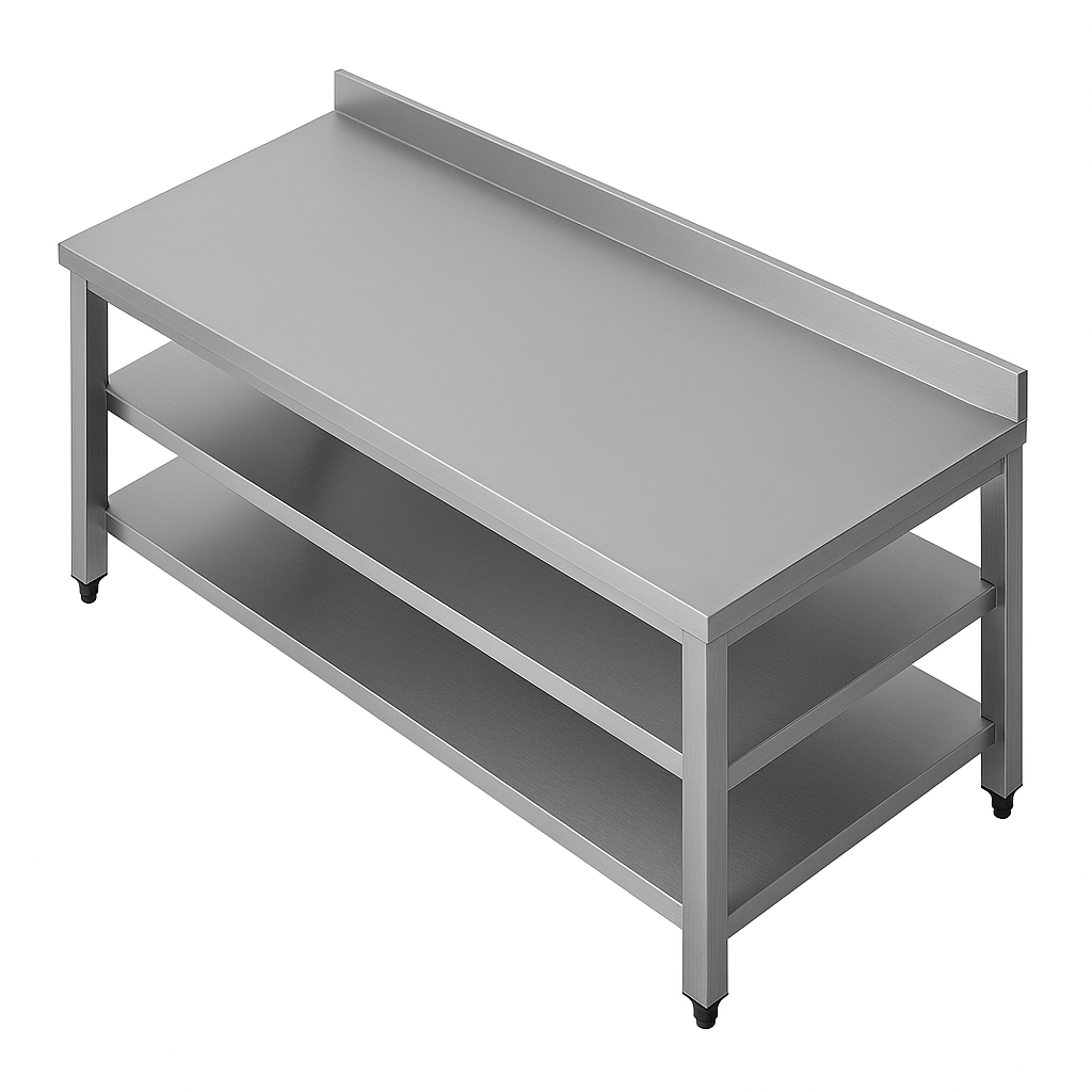 Dayanıklı paslanmaz çelikten üretilen çalışma tezgahı, yoğun mutfak operasyonlarına uygundur. Hijyenik ve sağlam yapıya sahiptir.