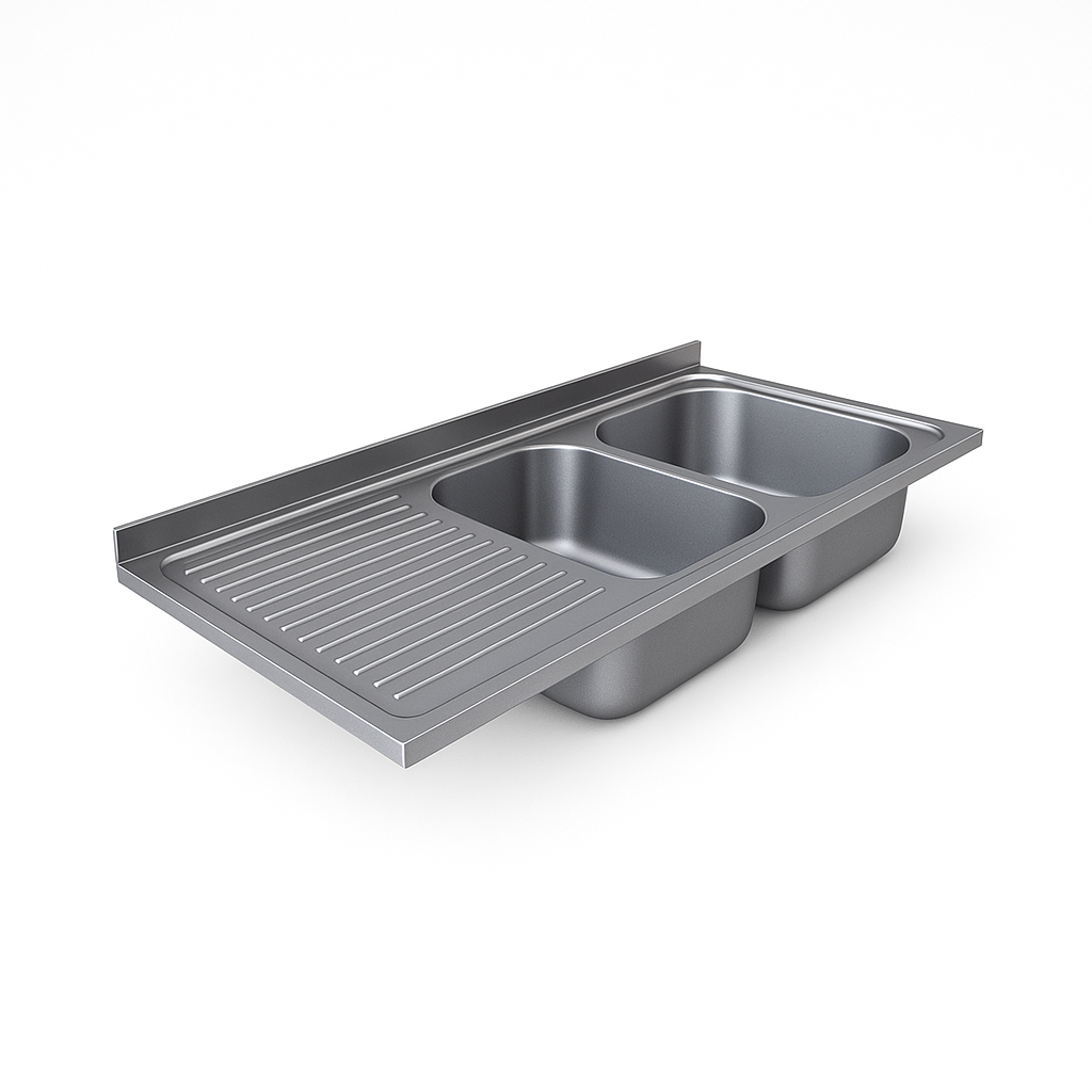 Çift evye sol damlalıklı model, yoğun yıkama gerektiren mutfaklarda yüksek verim sunar. Paslanmaz çelik yapısı sayesinde uzun ömürlüdür.