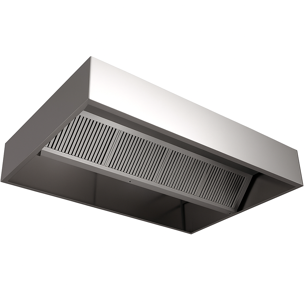 Endüstriyel standartlara uygun davlumbaz, yağ ve buharı etkin şekilde toplar.