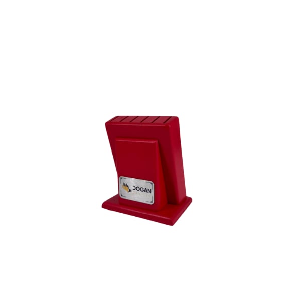 Kırmızı ahşap bıçak kütüğü, bıçakların düzenli ve estetik şekilde saklanmasına yardımcı olur. Dayanıklı malzemesi sayesinde uzun ömürlü kullanım sunar.