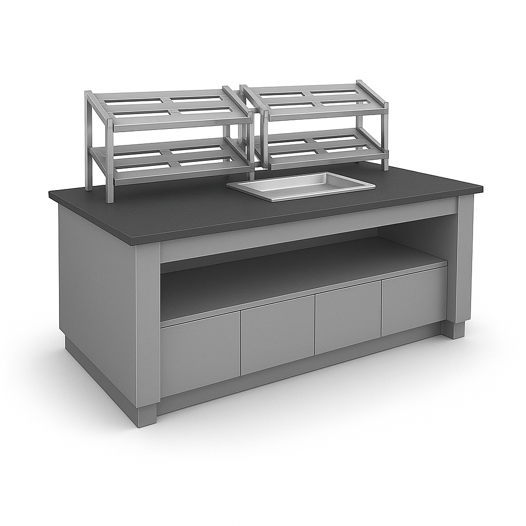 Kompakt ölçüleriyle dar alanlar için ideal olan Ekmek Servis Ünitesi (100-100-90), açık büfe ve self servis alanlarında ekmek sunumunu hijyenik ve düzenli hale getirir. Üst bölümde yer alan koruyucu camlı ekmek haznesi ürünlerin dış etkenlerden korunmasını sağlarken, alt bölüm servis ekipmanları için pratik depolama alanı sunar. Küçük ölçekli restoranlar, kafeler ve otel büfeleri için fonksiyonel bir çözümdür.