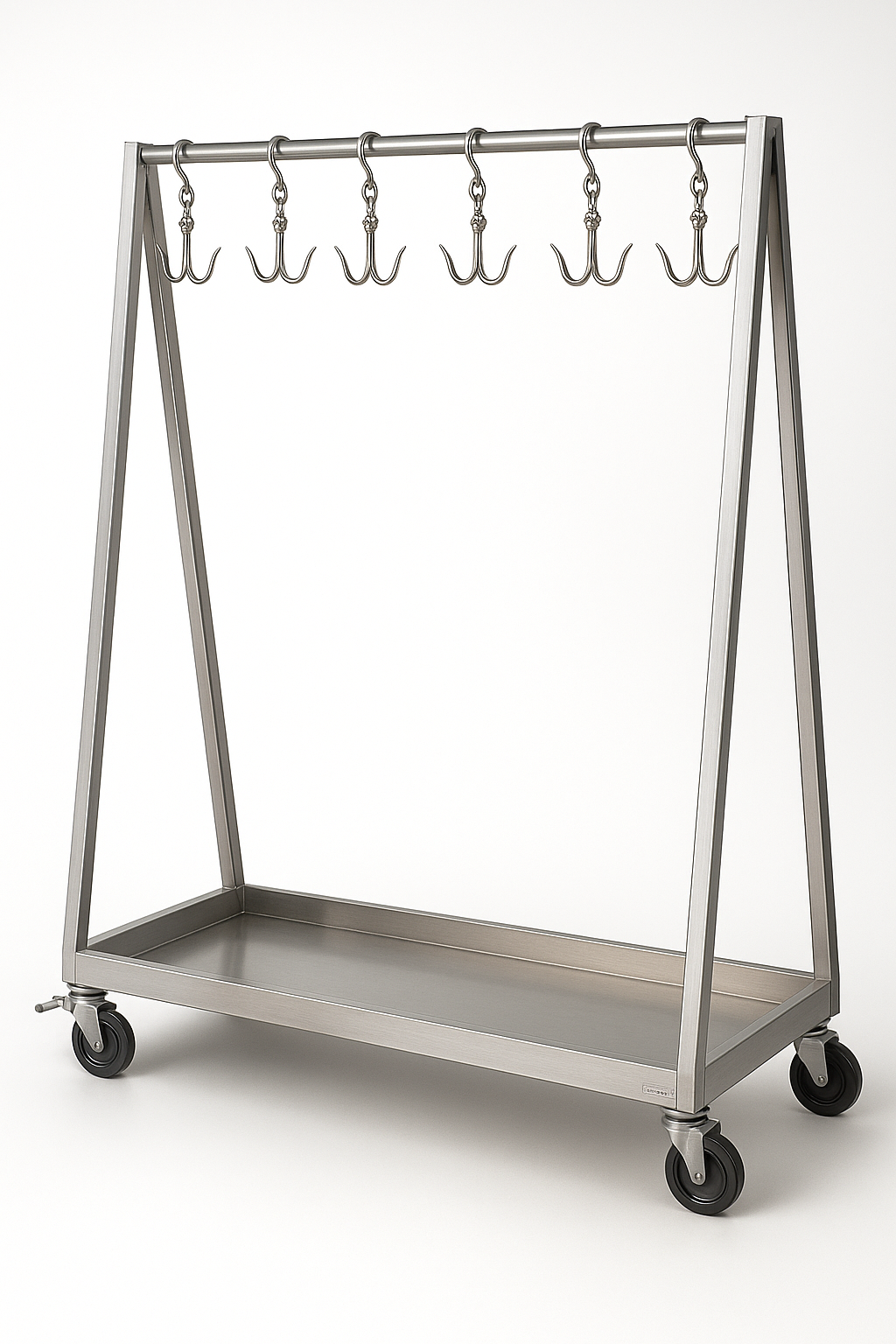 Etlerin hijyenik ve düzenli şekilde taşınmasını sağlayan Et Askı Arabası, dayanıklı yapısı sayesinde kasap ve endüstriyel mutfaklarda yoğun kullanıma uygundur.