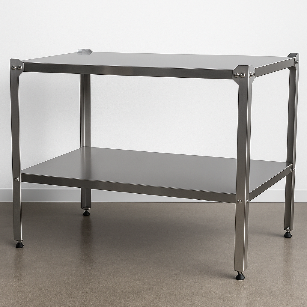 Konveksiyonlu fırınlar için üretilen bu alt tezgah, sağlam demir gövdesi ile güvenli kullanım sunar. Tepsi ve ekipman düzenini kolaylaştırır.