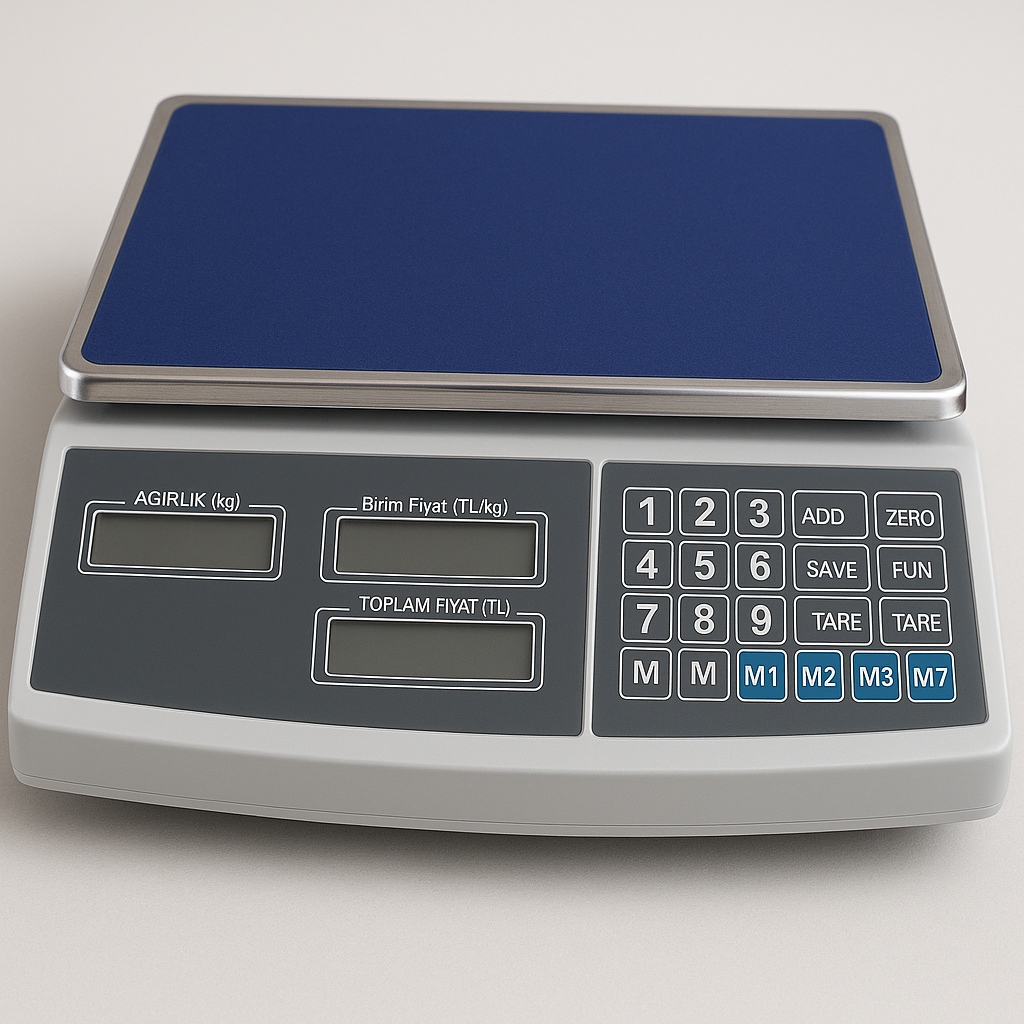 Fiyat hesaplamalı terazi, ürün tartımı ve fiyat hesaplamasını aynı anda yaparak satış süreçlerini hızlandırır. Hassas ölçüm kabiliyetiyle güvenilir sonuçlar sunar.