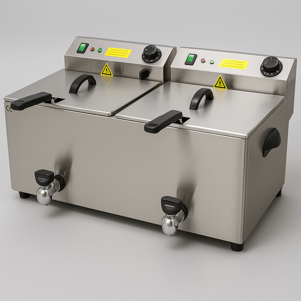 Elektrikli fritöz, dengeli ısıtma sistemi sayesinde homojen kızartma sağlar. Restoran ve endüstriyel mutfaklarda güvenli ve verimli kullanım sunar.