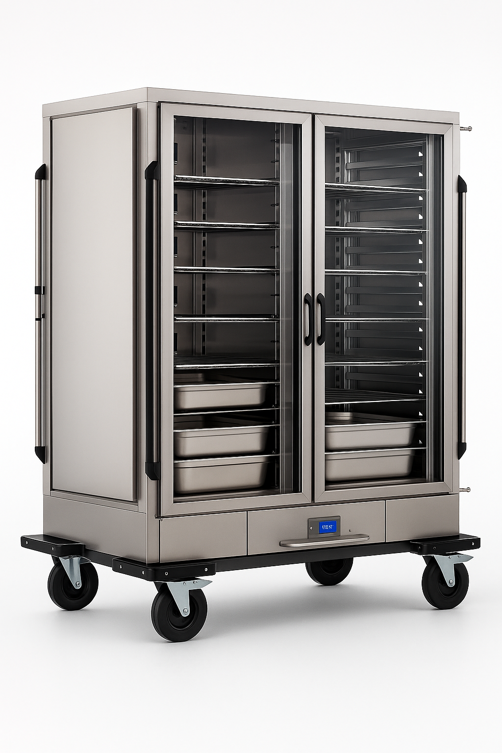 Çift cam kapılı ısıtmalı banket, yüksek hacimli sıcak muhafaza ihtiyacına cevap verir. Şeffaf yapısı sayesinde ürün takibini kolaylaştırır ve servis verimliliğini artırır.