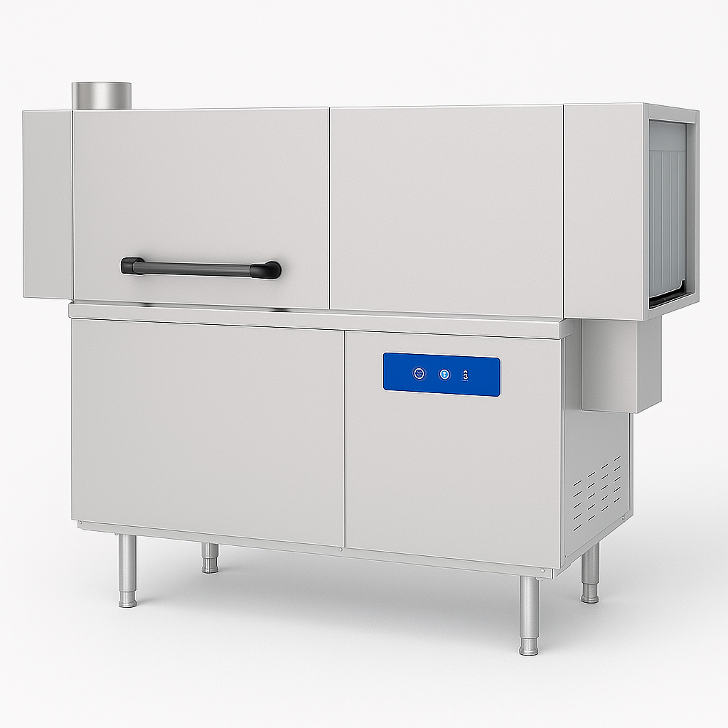 Sol girişli kurutmasız konveyör tipi bulaşık yıkama makinesi, yoğun tabak sirkülasyonu olan mutfaklarda hızlı ve kesintisiz yıkama sağlar. Kurutma modülü olmadan kompakt ve ekonomik bir çözüm sunar.