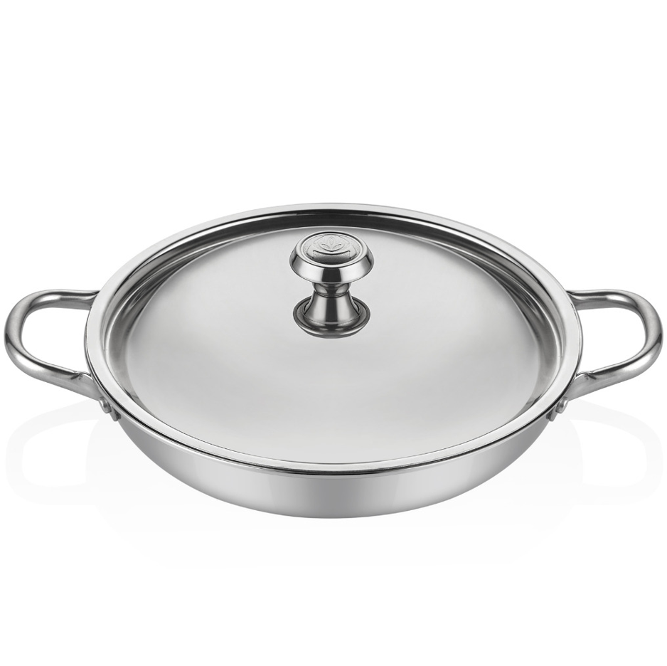 Multi Metal Çelik Sahan + Kapak, sağlam çelik yapısı ve kapağı sayesinde kontrollü pişirme ve sıcak tutma avantajı sunar.