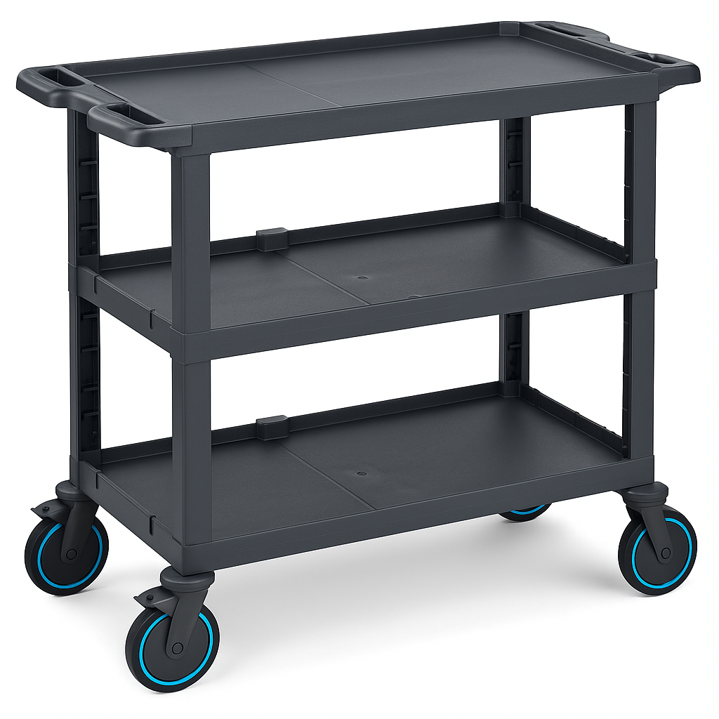 Ergonomik itme kulpları ve sessiz tekerlek sistemi sayesinde dar alanlarda dahi kolay manevra imkânı sağlar. Dengeli taşıma yapısı, servis sırasında devrilme ve sarsıntıyı minimize ederek güvenli kullanım sunar.