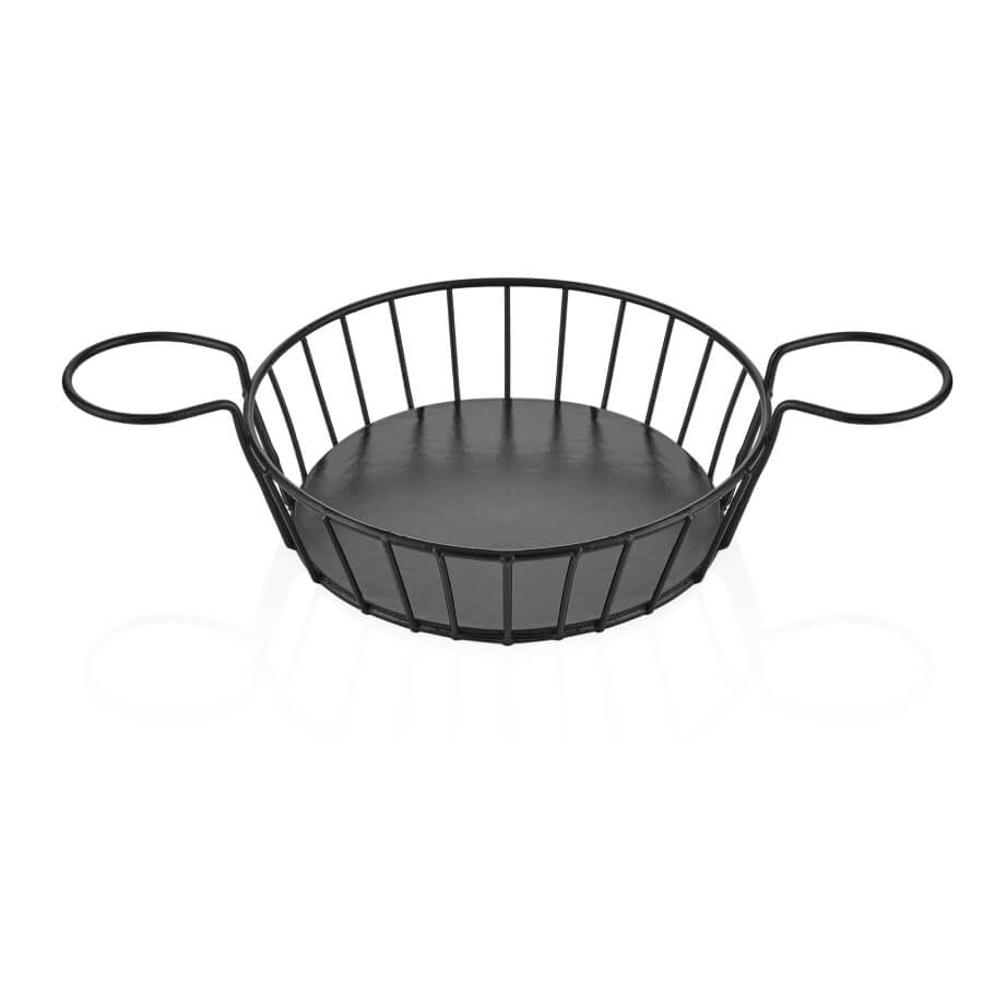 Yuvarlak sunum sepeti, estetik tasarımıyla profesyonel servis alanlarında kullanılır.